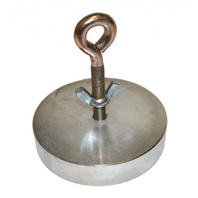 Приспособление предназначено для поиска предметов на глубине. Во время поисков магнит должен располагаться в подвешенном состоянии. Тогда силовое поле будет обращено ко дну, притягивая металл с наибольшей силой.