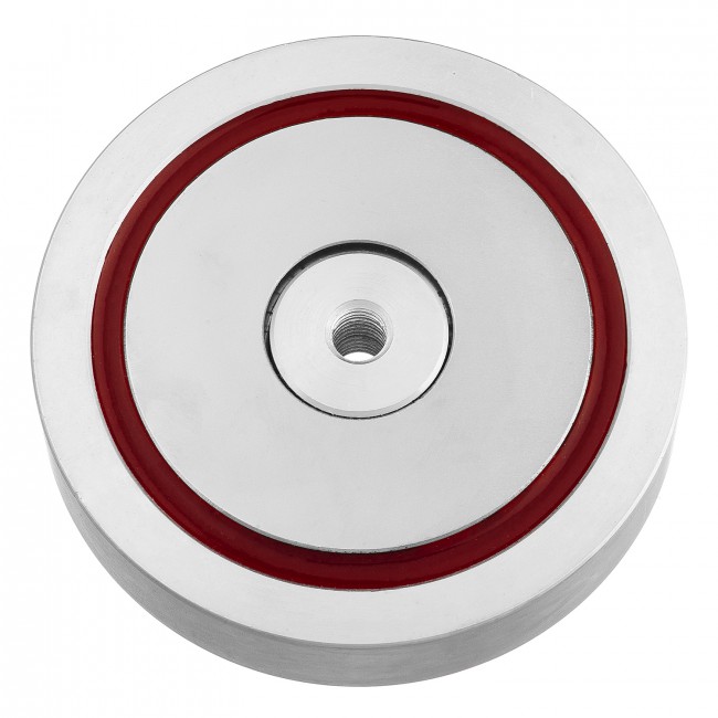 Устройство представляет собой магнитный сердечник в виде шайбы, заключённый в стальной корпус. В центре конструкции есть отверстие с резьбой М10под рым-болт. К его кольцу привязывается трос, с помощью которого магнит позиционируется в толще воды.